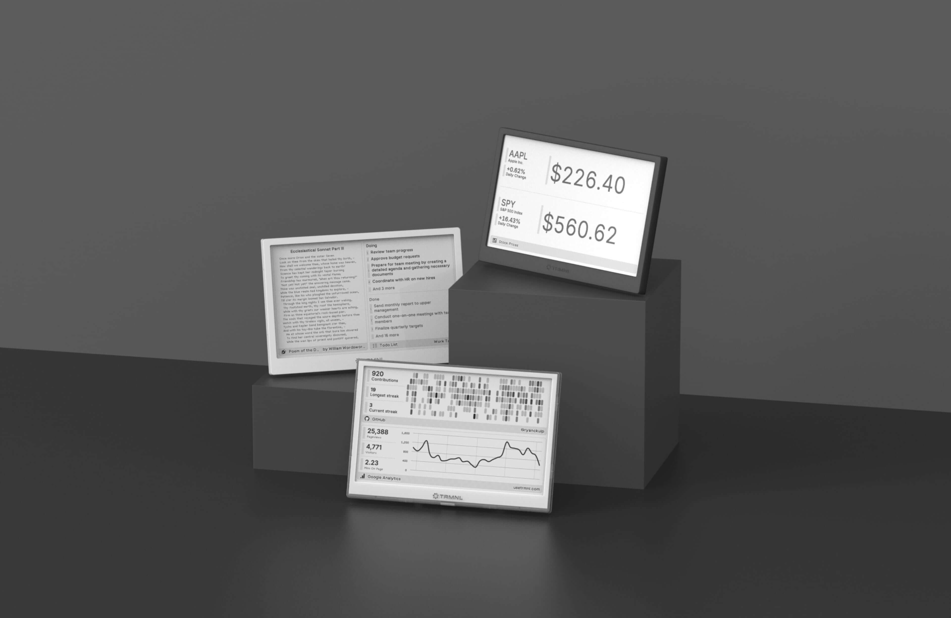 I had been on the hunt for an e-ink calendar - they were all prohibitively expensive, or exceedingly complex, or relied on some very fishy app connection. I mean I think I'm a pretty clever guy but I am not capable of the coding and programming needed for so many of the DIY options.Saw TRMNL. Bought TRMNL. It's perfect. Sits on my desk, tells me weather and my calendar, and updates only when it needs to.Despite what marketing tells us - we don't actually need every device to do every thing. TRMNL does what it says it will, does it well, and without extraneous nonsense. Perfect.
