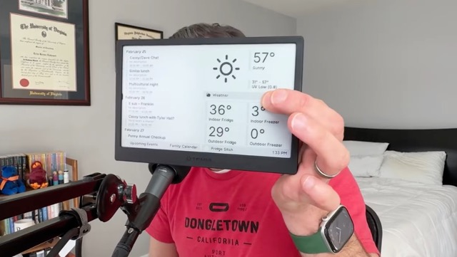 The family calendar and weather is finally viewable from a central place in the house without a phone or computer. No more missed appointments! Bonus: Dog facts!