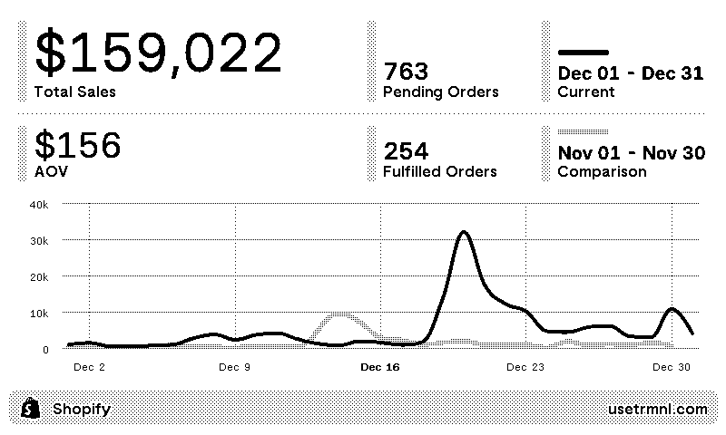 Shopify store sales dashboard