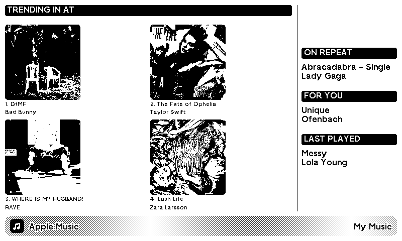 Display country chart, recently played, on repeat
